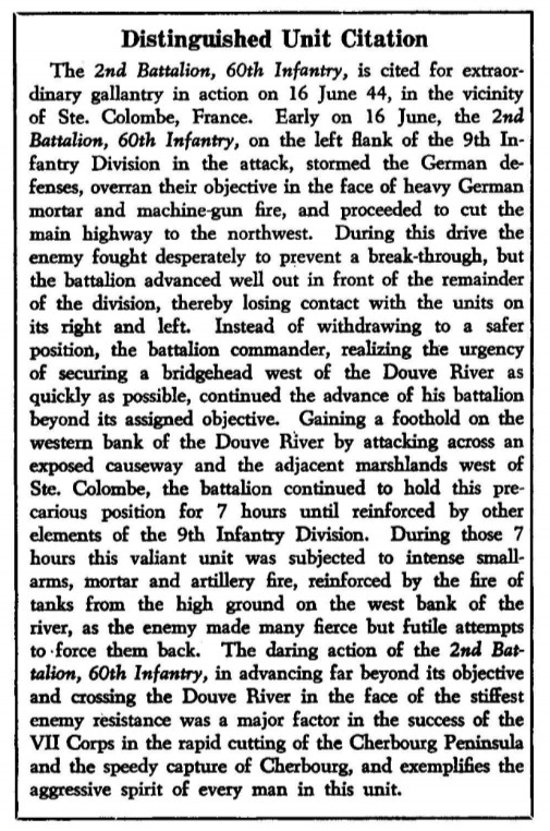 For their actions at Ste. Colombe on the 16th of June 1944, 2nd Battalion received the Distinguished Unit Citation.