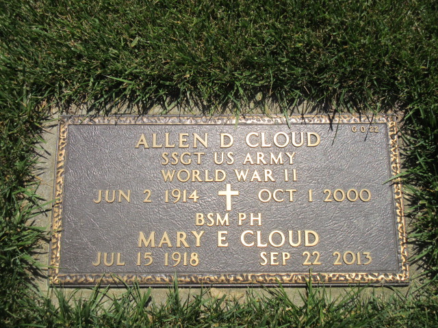 Staff Sergeant Allen Cloud was awarded a Bronze Star for “heroism in ground combat” in Tunisia on March 29, 1943; by 2/4/44 executive order of President Roosevelt; actually not given until 2/14/51.