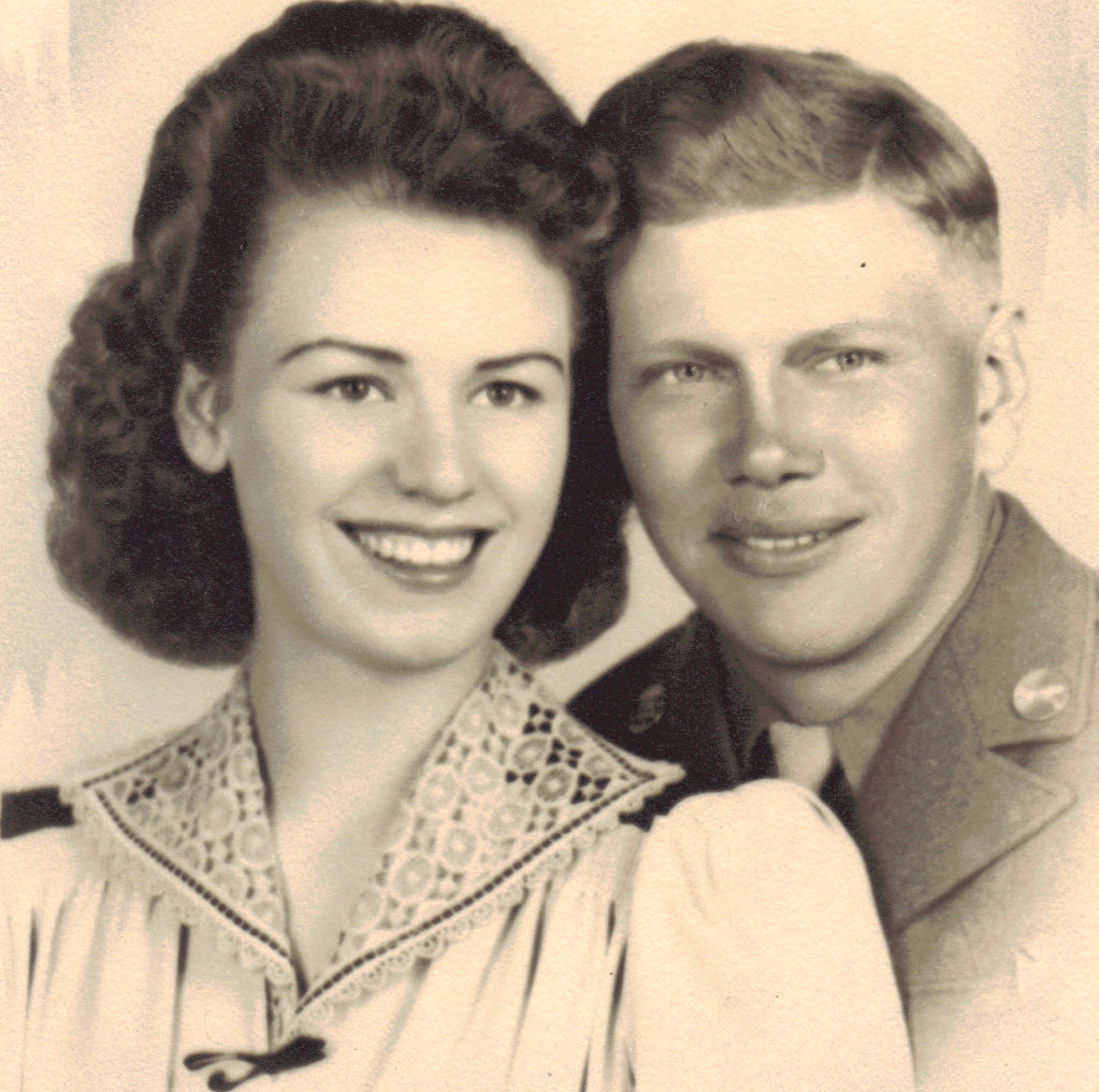 When Kelly was engaged in Infantry training at Fort Carson in Colorado Springs, Colorado, Carolyn visited him and they got married on December 31st, 1942. After Kelly was transferred to Camp Robbins in California to train other soldiers, Carolyn moved back to Iowa, stayed on her mother’s farm, and gave birth to their son James on September 28th, 1943. Kelly did not see his son until after he was discharged from the Army in the fall of 1945.