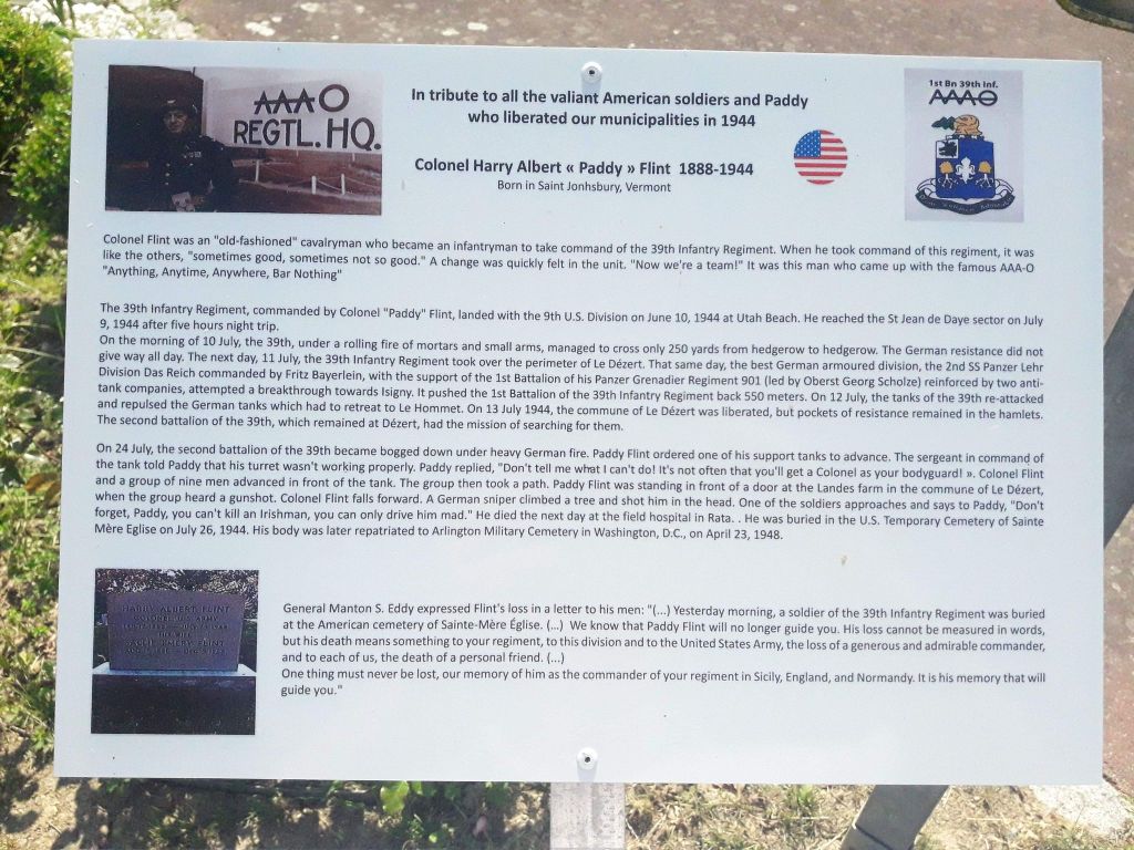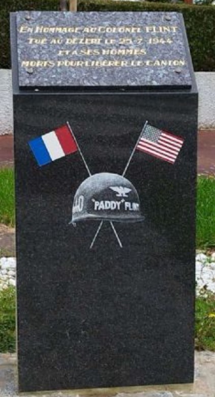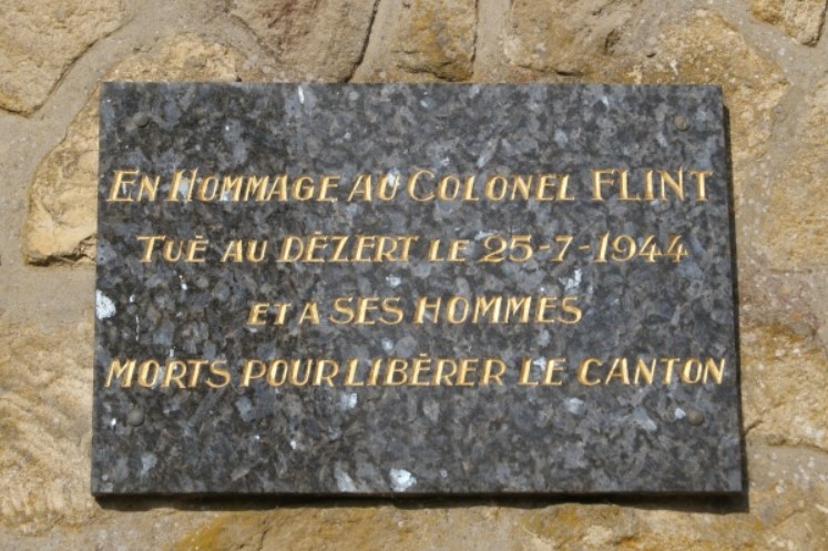 While it is great that Colonel Flint has been commemorated in Normandy by several plaques, the information and location of the plaques are sadly not correct.