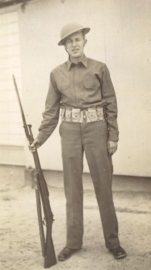 In 1941, John got drafted. During World War 2, local draft boards were used and set up to process and administer the registrations from coast to coast. All these boards assigned each of the registrants in its district a number. These numbers were called on the radio. John had a low number and one day, his number was called when he and his cousin Joan were sanding a chair for their grandmother. John was inducted into the Army on January 16th, 1941. He went straight to Fort Bragg, North Carolina, where he joined K Company of the 60th Infantry Regiment, 9th Infantry Division. The 9th Infantry Division went on amphibious maneuvers in the Chesapeake Bay. He remained down there until October 23rd, 1942.