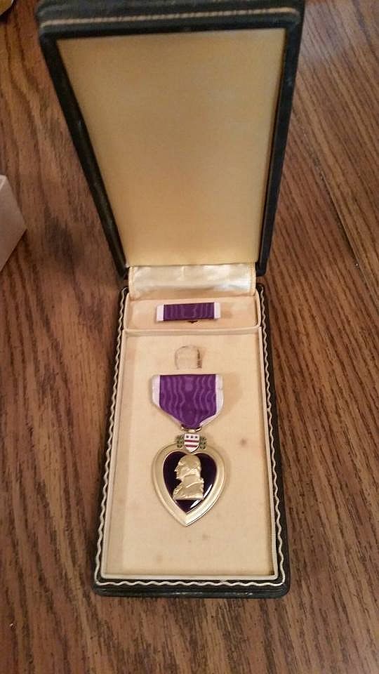 Purple Heart with Oak Leaf Cluster, Aug 19, 44, the Bronze Star Medal and entitled for the Good Conduct Medal.